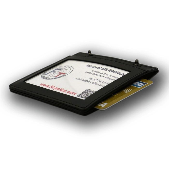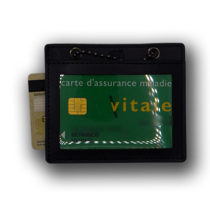 Possibilité de mettre des carte dans une partie transparente au recto comme au verso, le porte carte laisse une fente latérale pour insérer des billets ou d'autres carte.