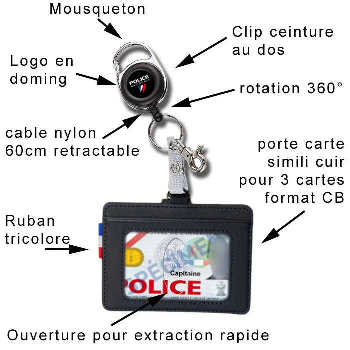 Porte-clés Enrouleur Police Nationale 3 griffes: