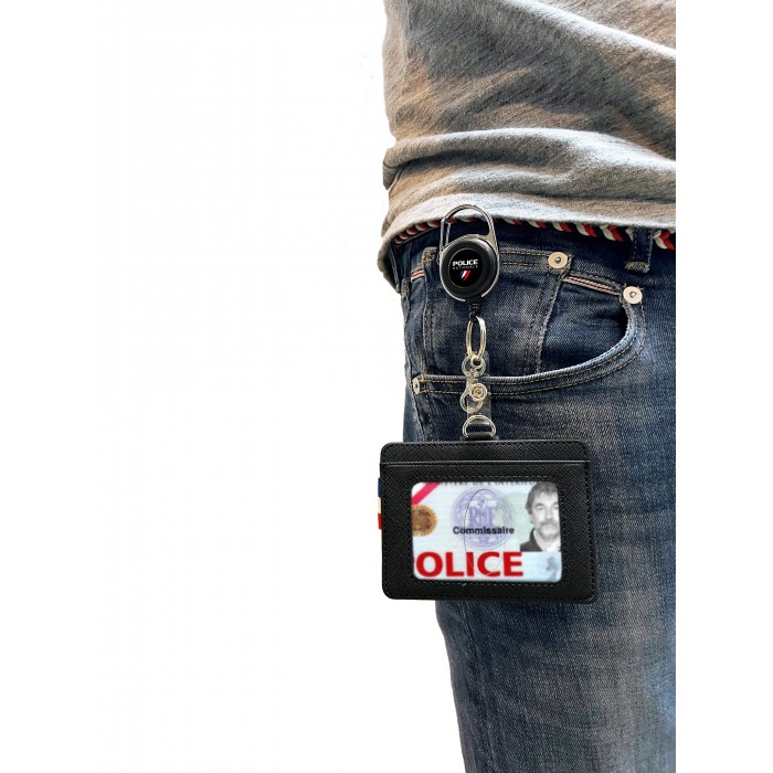 Un Porte carte Format CB, ruban tricolore et fenêtre d'extraction rapide de carte pro