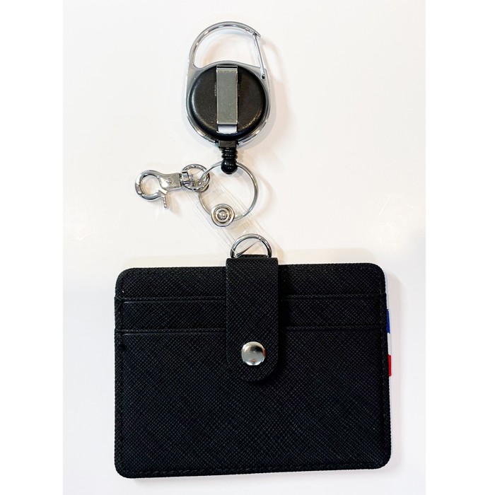 Porte carte Format CB similicuir, ruban tricolore et fenêtre d'extraction rapide de carte pro. Possibilité de ranger plusieurs carte au format CB sécurisé avec bouton pression.