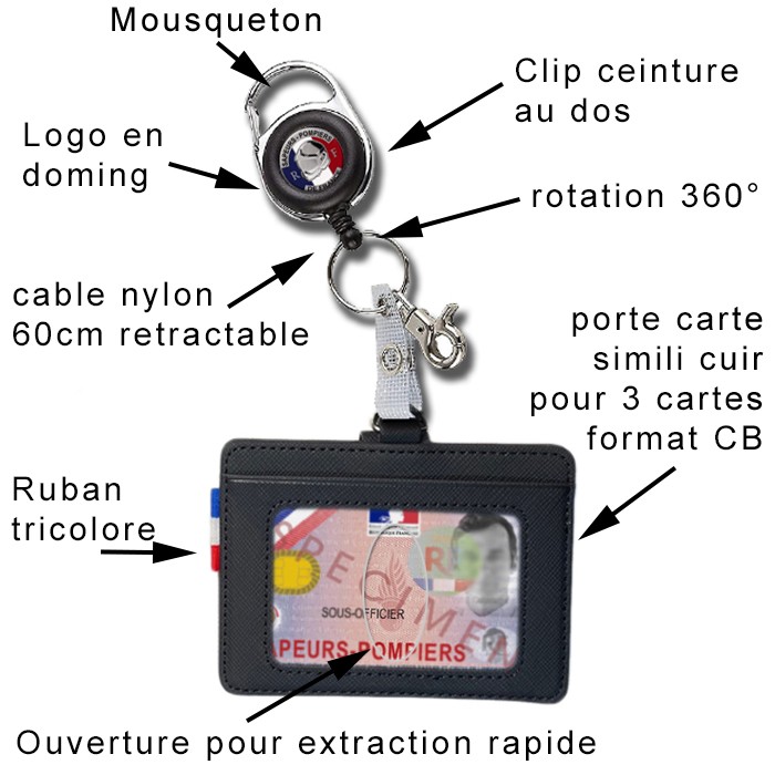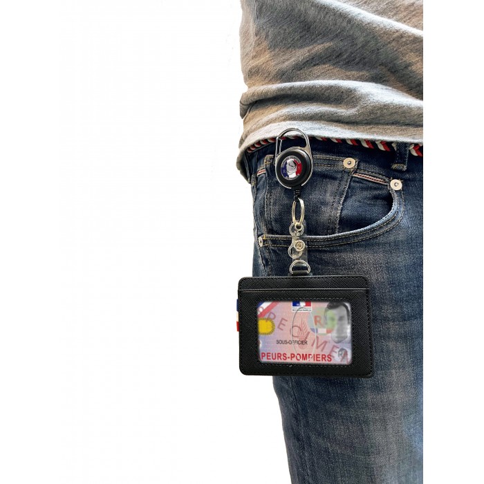 Un Porte carte Format CB, ruban tricolore et fenêtre d'extraction rapide de carte pro