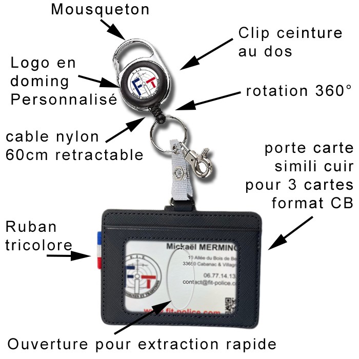 Un Porte carte Format CB, ruban tricolore et fenêtre d'extraction rapide de carte pro