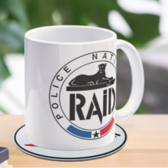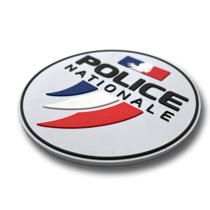 Dessous de mug / verre en pvc souple thermo injecté à l'image du nouveau logo de police 3 griffes