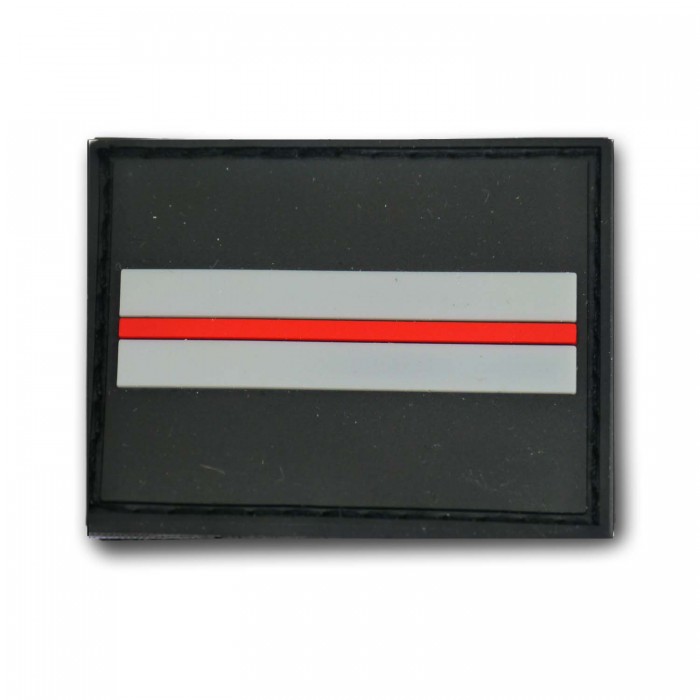 Basse visibilité : fond noir avec barres gris moyen et liseré rouge central, parfaite pour les interventions discrètes ou en basse lumière.