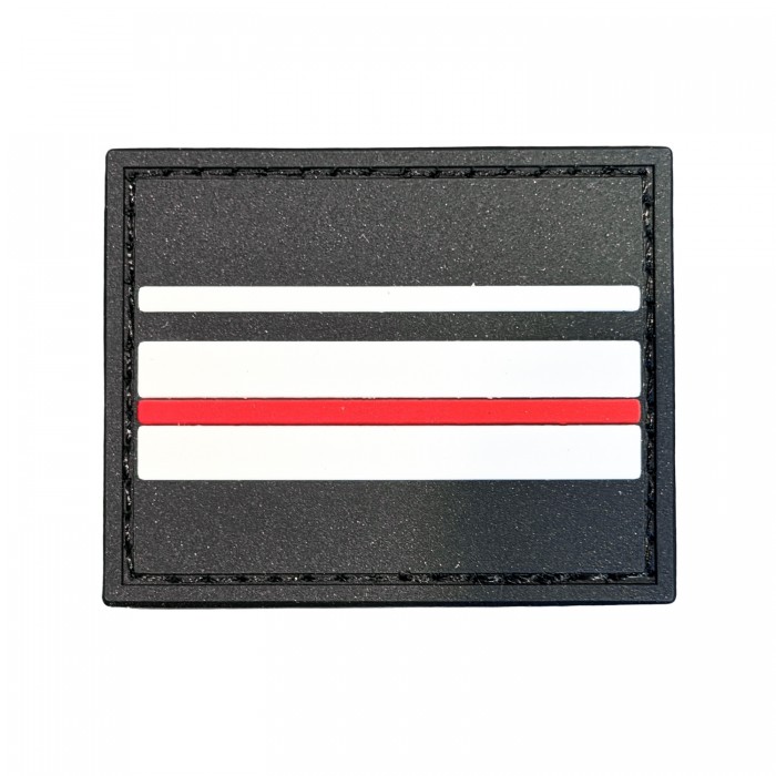 Haute visibilité (HV) : fond noir, trois barrettes blanches dont la barrette inférieure soulignée par un liseré rouge, pour une identification claire et immédiate.