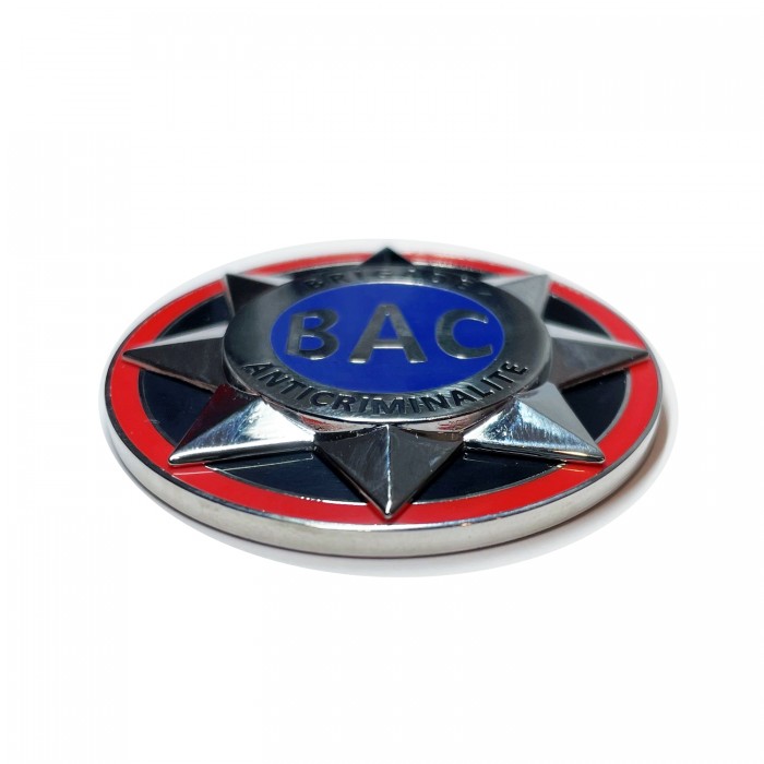 La médaille métallique 48mm pour la brigade anticriminalité est un accessoire de qualité supérieure qui peut être utilisé pour honorer les membres de votre unité de police. Cette médaille est en métal solide, avec une finition chromé et un émail de couleur bleu, blanc et rouge. Elle se compose d'une premiére base de médaille ainsi qu'une étoile métallique en relief sertie. Le logo reprend une version modernisé de l'ancienne étoile de police. Elle mesure 48mm de diamètre et a une épaisseur de 3mm, ce qui lui donne une apparence robuste et durable.
