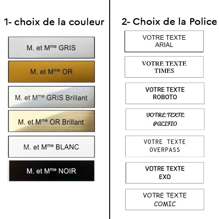Choisissez la couleur et la police d'écriture dans les menus déroulant à droite du produit