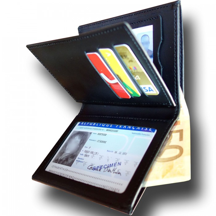3 chaussettes de rangement au revers pour cartes (CB, visite, transport, etc.)