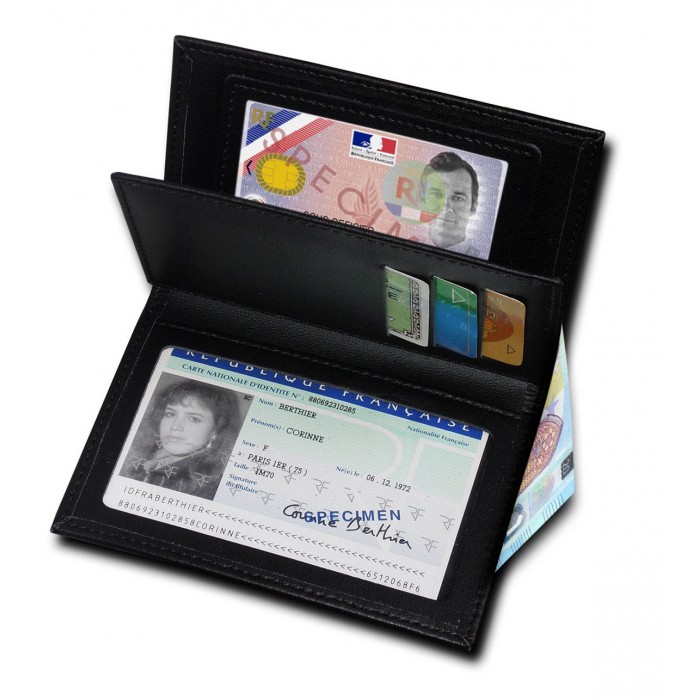 La deuxième partie du porte carte permet de ranger des cartes de crédits/ visite, avec en face un emplacement protégé transparent pour carte d'identité.
