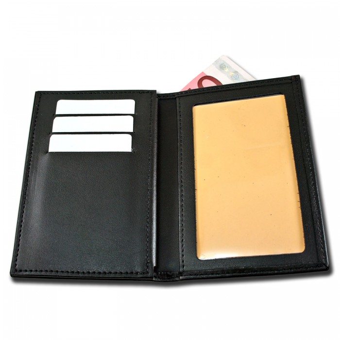 La premier partie du porte carte, laisse un emplacement protégé pour carte professionnelle. En face, un insigne métallique émaillé au choix.