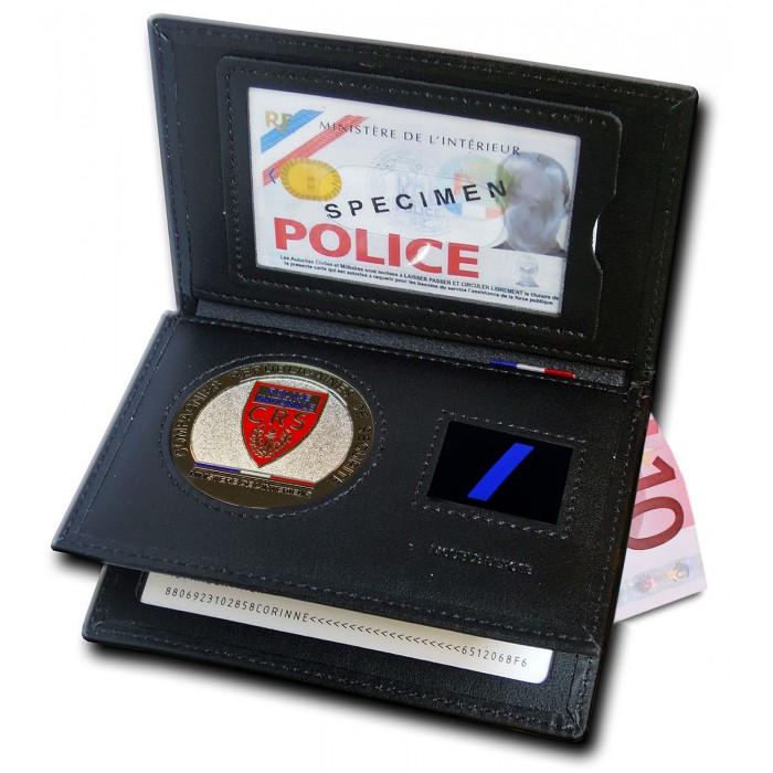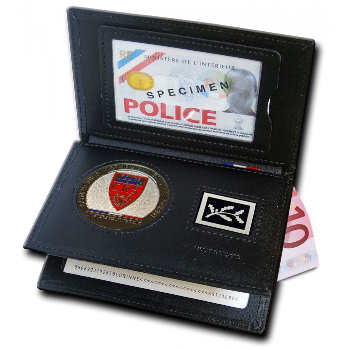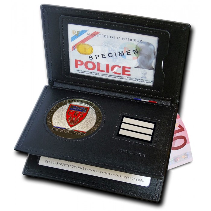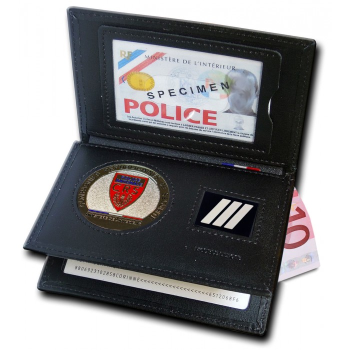 Porte-carte 3 volets rigide, format carte bancaire, livré avec médaille CRS 48 mm et grade plastique au choix. Boîte cadeau incluse.