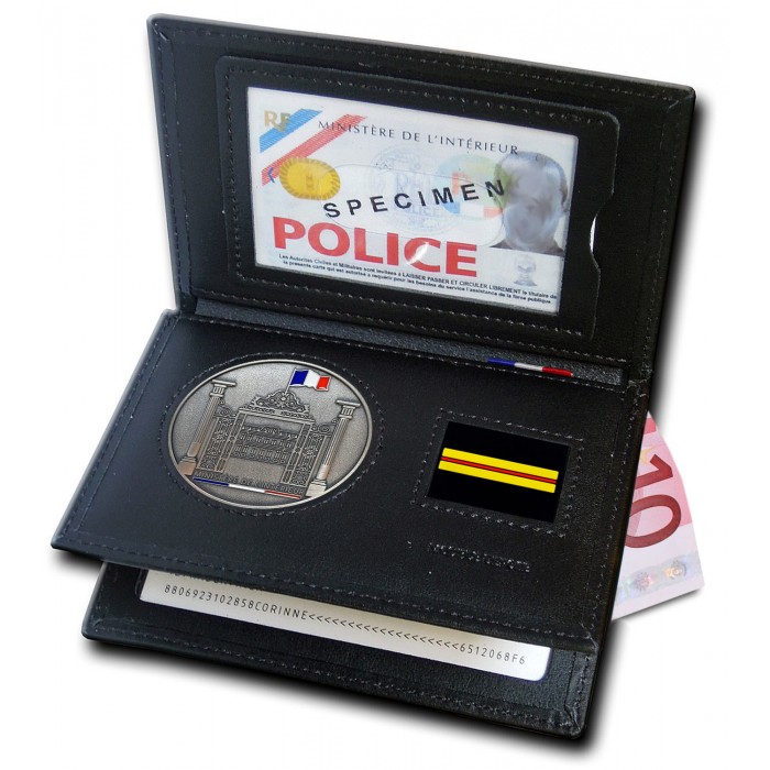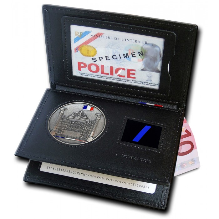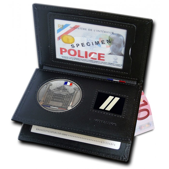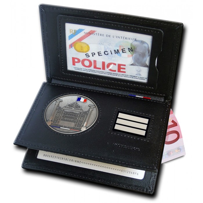 Porte-carte 3 volets rigide, format CB, livré avec médaille 48 mm "Ministère de l’Intérieur" et grade plastique au choix. Boîte cadeau incluse.