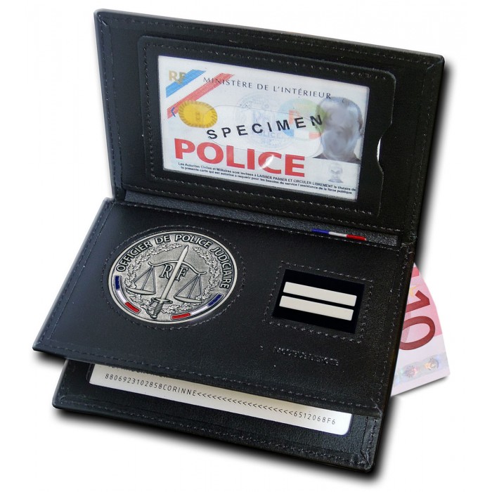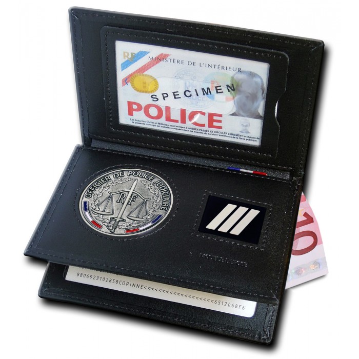 Porte-carte 3 volets rigide, format CB, livré avec médaille OPJ 48 mm et grade plastique au choix. Boîte cadeau incluse.