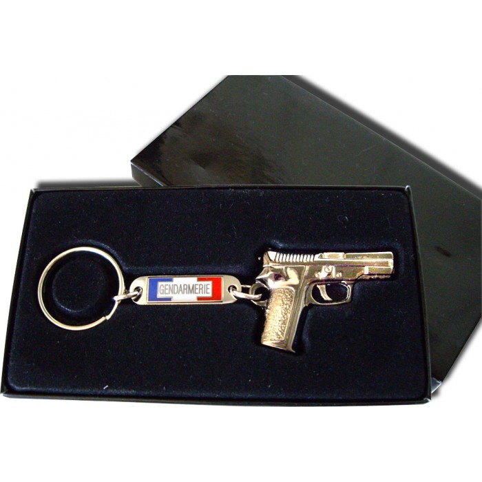 Attache ronde relié au prote clés par une plaque émaillée bleu blanc rouge, avec l'inscription Gendarmerie
