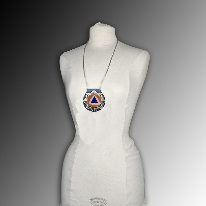 Plaque métallique émaillée en for d'étoile avec le logo de la protection civile.